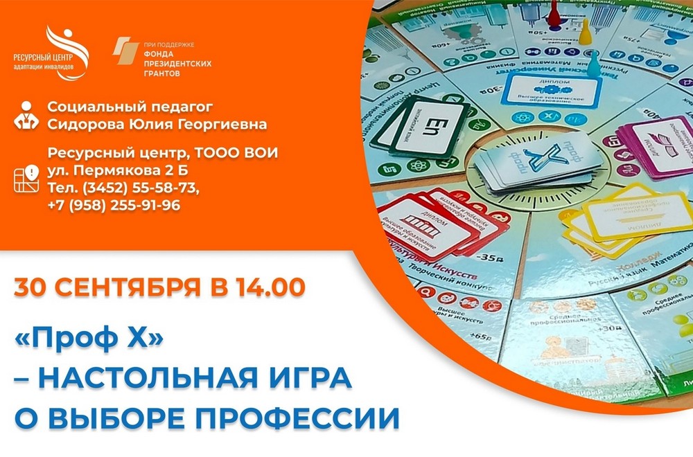 30 сентября в 14.00 в Ресурсном центре адаптации инвалидов (ул. Пермякова, 2Б) пройдет профориентационное мероприятие для людей с инвалидностью от 12 лет и старше. Участники смогут проконсультироваться по вопросам получения той или иной профессии и...